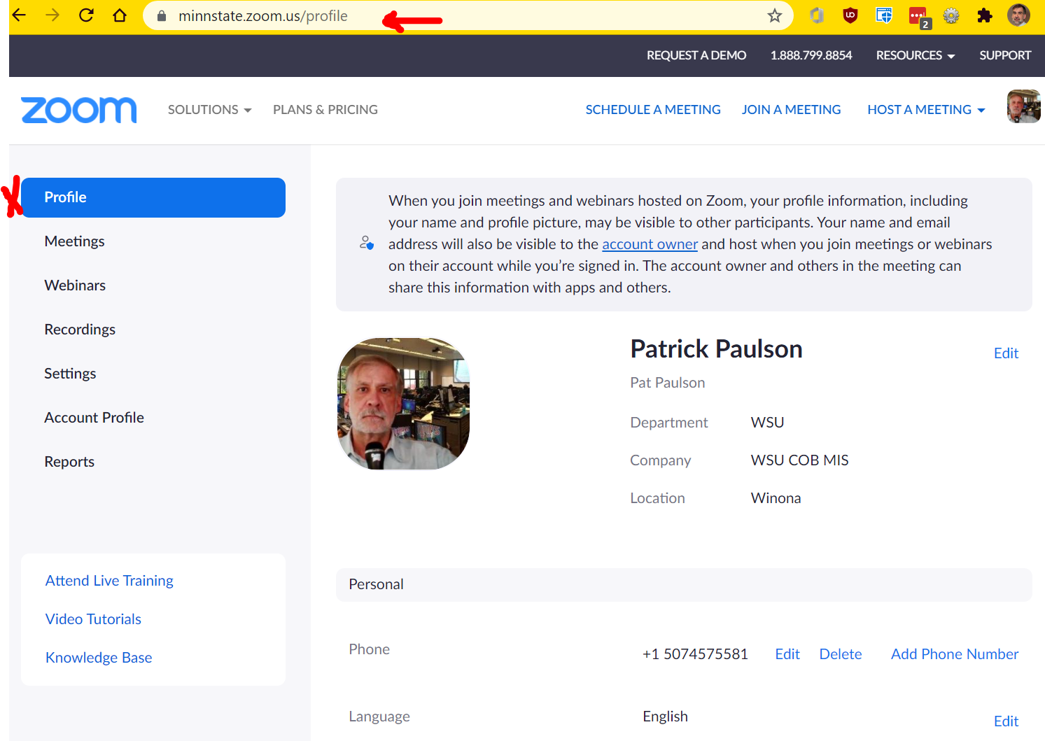 In your Zoom account, click the 'Profile' on the left side and view your profile. Make the window big enough to view at least the information shown below.