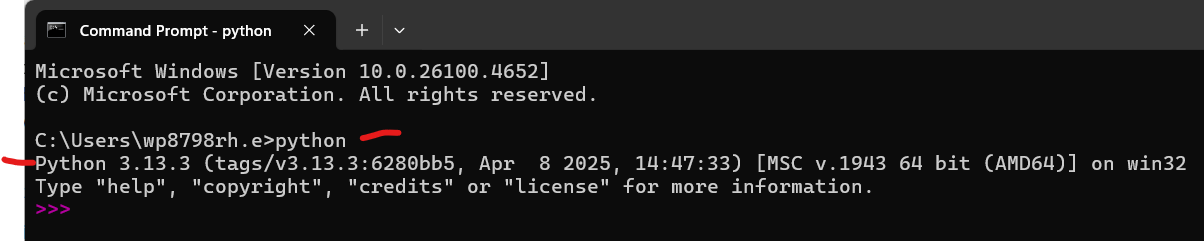 Once Python is installed, open a command prompt or terminal windows and enter 'python' If Python is installed correctly you will see the version number displayed. Python Installed, Version